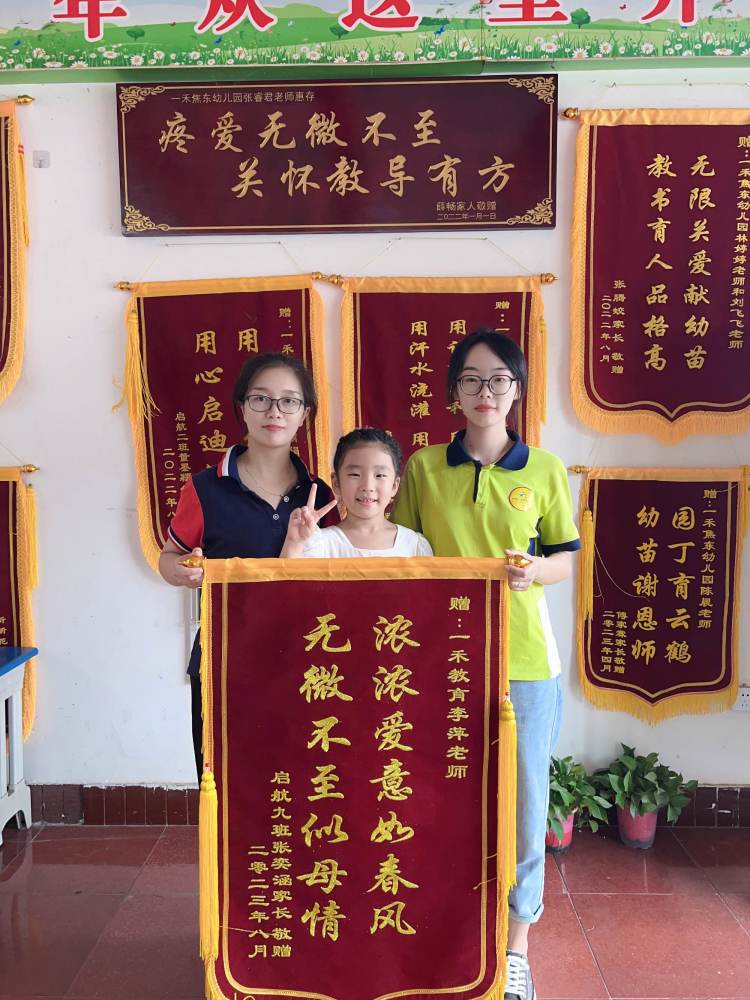 畢業季,一禾焦東幼兒園被滿滿的愛包圍著。各班老師陸陸續續收到了家長送來不同的錦旗。