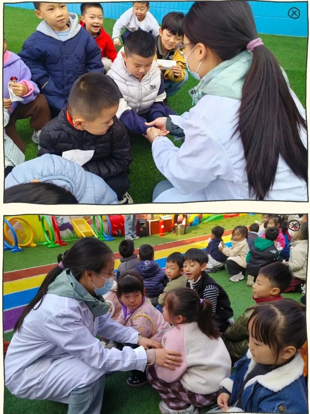 各班班主任迅速清點人數(shù)并向指揮部匯報;并及時確認“全體幼兒安全脫險、無受傷人員”,現(xiàn)場救護小組全程待命,為安全保駕護航。